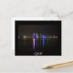 Cartão-postal dos arranha-céus iluminados na linha do horizonte do centro comercial de Doha, a capital do Catar, país do Golfo Árabe, à noite, com uma fronteira negra e o texto: 'Qatar'.