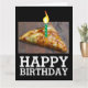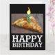 PIZZA SLICE COM PLACA DE CANDELA. FELIZ ANIVERSÁRIO. COM TODAS AS COISAS!"