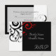 Pequeno cartão de RSVP para combinar com o nosso convite de casamento preto e branco com redemoinho reverso em vermelho, com fundo gráfico de folhas em espiral. Personalize online com os detalhes do seu casamento.