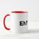 Esta é uma caneca divertida que apresenta de um lado uma folha de mapa canadense sorridente. Por outro lado diz, "Eh?". Isso diz tudo, certo? :) Isto pode ser usado no Dia do Canadá, ou em qualquer dia do ano em casa ou no escritório. E eu coloquei isso numa caneca vermelha para ir com a bandeira canadense. Mas, você está livre para comprar em qualquer uma das outras cores, e outros itens de bebendo oferecidos. Desenhado por Sheila Cicchi, Brownielocks.com. Todos os Direitos Reservados.
