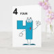 Esta design deveria fazer você sorrir porque está fora de um número 4 sorridente. O número 4 é feito em estilo cartoon com braços, pernas e olhos. O número 4 é de cor azul clara e as palavras 4 são escritas acima. Este design sorridente número 4 parece excelente nestas placas de saudação