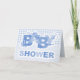 Convite adorável e original do chá de fraldas para rapazes pequenos. Letras azuis grandes para o bebê da palavra com fundo azul e branco do guingão e das bolinhas. Provérbios bonitos do bebê sobre as letras: Snips e caracóis, caudas do cão de filhote de cachorro, afagos, abraços, cócegas, milagre e amor. O pino pequeno bonito do filhote de cachorro, do caracol e da fralda termina o olhar. PERSONALIZE o texto interno com sua informação do chá. Os selos de harmonização e agradecem-lhe notam disponível.