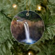 Este ornamento cerâmico circular apresenta a bela cachoeira Snoqualmie Falls numa noite de verão. Snoqualmie Falls, parte da série de televisão Twin Peaks, é fascinante em qualquer época do ano. No verão, você pode ver uma vegetação exuberante nas várias encostas, com uma tonalidade azulada na água neste famoso marco. Depois das chuvas incessantes do Noroeste do Pacífico, as quedas incham e batem em sua rota de 268 pés até o fundo. Este destino popular, agora no Registro Nacional de Lugares Históricos, inclui uma casa e uma mistura deliciosa de panquecas. As quedas também têm significado espiritual importante para a Tribo Nativa Americana Snoqualmie.