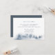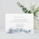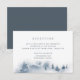 Projetado para combinar com nossa coleção de casamento Snowbound, este cartão de inclusão de recepção de inverno elegante apresenta uma cena de floresta nevada com pinheiros em aquarela em azul e cinza. Personalize com os detalhes da recepção do seu casamento, incluindo horário, local e endereço, em letras clássicas em tom de cinza-azulado.