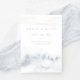 O convite para casamentos no inverno elegante apresenta um fundo de aquarela que representa uma paisagem de montanha nevada pontilhada com silhuetas de pinheiros em tons de sombra azul e cinza. Personalize com os detalhes do seu casamento em caracteres de cinza azul-chic. Uma bela escolha para casamentos no inverno elegantes em zonas montanhosas ou florestais.