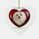 Este ornamento bonito caracteriza Snowdrop, um cão maltês pequeno doce que veste um chapéu do papai noel que olha através de uma janela gelado.