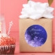 Fundo azul escuro, mas brilhante, embelezado com flocos de neve brilhantes e estrelas em diferentes tons de roxo e polvilhado com faíscas brancas. Delicado e bonito. Personalize se quiser.
