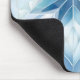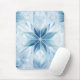 Mouse pad with blue snowflake design.
