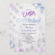 Winter ONEderland First Birthday Invitation com fundo branco e flocos de neve perfeitos para o aniversário de inverno.