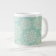 Uma caneca brilhante e divertida para o inverno para todo o seu chocolate quente de inverno, café, até sopa ou chili! Esta caneca de especialidade jumbo apresenta um azul aqua bonito com círculos de flocos de neve design.