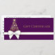 Design de Natal luxuoso e rico com uma esplêndida silhueta de árvore de Natal com flocos de neve ouros. Decorado com um arco de presente de ouro branco sobre um fundo roxo e roxo, cor-de-rosa. Esta certidão festiva é perfeita para a sua pequena empresa ou para oferecer amigos e família.