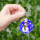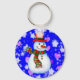 Bonito boneco de neve, estrelas e corações em fundo azul. Chaveiro adorável, tão bom como o presente de Natal!