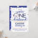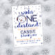 Primeiro convite de aniversário. Terra maravilhosa de inverno com bonitinhos de neve.