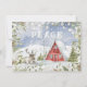 Este cartão de saudação de inverno adorável apresenta uma cabana vermelha, com quadro A, na neve de inverno, com texto que diz "PEACE". As costas têm uma colina de neve com espaço para escrever na sua própria mensagem.