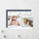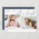 O design de cartão de feriado simples e moderno apresenta duas das suas fotos favoritas com um alinhamento deslocado, enquadrado pela queda de flocos de neve. "All is Bright" aparece em letras casuais azuis com script, com seu nome de família e o ano no canto inferior esquerdo. Um design único contemporâneo em um layout horizontal ou paisagístico para uma aparência de feriado em tendência.