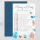 Sob o Chá de fraldas do mar, adivinha quem Mamãe ou Pai. Um mundo submarino bonito. Aquático. Vida no oceano. Animais subaquáticos. Água-viva, caranguejo, tartaruga, polvo, coral, peixe-estrela, baleia, âncora. Coleção marinha com criaturas marinhas para raparigas e rapazes