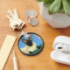 Chaveiro com detalhes de uma pintura de um gato siamês sob as flores de cereja.