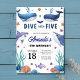 Faça um salto e convide seus convidados para uma aventura submersa com este adorável convite de aniversário "Mergulhe em Cinco"! Perfeito para comemorar o aniversário de 5 Amanda, este design está cheio de ilustrações encantadoras de aquarelas, baleias amigáveis, tubarões sorridentes e outras vidas marinhas como conchas e estrelas-do-mar. O tema certeiro do oceano e a tipografia brincalhona criam uma atmosfera divertida e convidativa para uma celebração fintastica. Todos os detalhes da festa são perfeitamente personalizáveis para tornar o seu grande dia realmente especial!