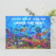SOB O convite da festa de aniversário personalizável do SEA (ou qualquer outra ocasião), Traci Van Wagoner (www.tracivanwagoner.com) apresenta uma arte original em branco, de snorkeling, crianças vendo um peixe-balão se encher debaixo do mar. Tire uma natação hoje e convide seus amigos para uma festa cheia de diversão com nosso convite SOB O MAR cheio de crianças curiosas roncando, criaturas divertidas e algumas coisas de bobo também! Esta trabalho de arte colorida divertida está cheia de um rapaz e uma menina roncando, cavalos-do-mar, coral, baiacu, sereia, estrelas-do-mar, enguias, um tubarão vendo TV e comendo pipoca, um peixe-estrela banhando o sol e outras coisas do mar e bobo. Faça uma festa fantástica!