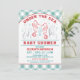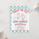 Convite bonito do chá de fraldas com dois cavalos marinhos e bebê. Fundo do teste padrão do guingão da cerceta/aqua, moluscos, bolhas, corda do pescador e alga. Fácil personalizar com seu próprio texto. Excelente para uma praia, um oceano, um mar, um piquenique, um partido náutico ou do verão do bebê q/chá de fraldas dos casais. Ilustração original pelo pj_design. Verifique por favor minha loja para ver se há mais como esta.
