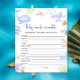 Sob o Mar - Animal oceânico submarino temido convite para Chá de fraldas com a cor da água - baleias, águas-vivas, polvo, marisco, peixe-palha, caranguejo, tubarão e corais. Bolhas de água e conchas. Respostas: CRAVINGS, CRYING, PACIFIER, FRASCO, LUZ NOTURNA, LULLABY, STROLLER, EPIDURAL, BURP, ALTA CADEIRA, SACO DE DIAPER, SWADDLE
