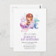 Este convite à aquarela é ideal para o primeiro aniversário de meninas, mas pode ser adaptado para qualquer ocasião. Fácil de personalizar para QUALQUER IDADE com todos os detalhes da sua festa! Apresenta uma sereia púrpura, cavalo marinho e polvo debaixo d'água em um gráfico com estilo aquarela, e uma simples tipografia.
