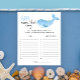 Um pequeno a caminho com este convite de chá de fraldas sob o tema do mar, apresentando baleia bebê em aquarelas moles azuis.