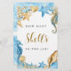NÃO SE ESQUEÇA DE ADICIONAR O NOME E A DATA DA BRIDE. | Este Jogo de Chá de panela sob o mar azul e Dourado (quantas conchas na jarra?) apresenta cavalos marinhos, peixes-espinheiro, conchas e recifes de coral. Para personalização mais avançada deste design, clique no botão "Personalizar" acima! Itens correspondentes também estão disponíveis.