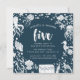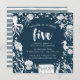 Convites de aniversário Adoráveis da vida marinha para o seu quinto aniversário apresentam um fundo azul escuro com ilustrações brancas da vida marinha em torno de seus detalhes de festa de aniversário.