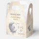 Estamos sobre a lua, chá de fraldas celestial elegante que favorece caixas em cores ouros e cinzas prateadas com lua decorada e a face do bebê, diamantes e poeira estelar. Excelente para um chá de fraldas neutro em termos de gênero durante todo o ano. Personalize facilmente o texto. - Kate Eden Art