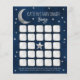 Estas cartas de bingo "sobre a lua" são perfeitas para qualquer um que tenha um chá de fraldas este ano. A design apresenta uma lua prateada com estrelas sobre fundo de marinho azul-aquarela e uma formulação fácil de personalizar modelo. Basta incluir esses cartões de bingo quando você enviar seus convites de chuveiros de bebê correspondentes, seus hóspedes podem então preencher cada quadrado com qualquer presente que eles pensam que o bebê receberá no chá, cinco em qualquer direção ganham um prêmio!