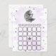 Estas cartas de bingo "sobre a lua" são perfeitas para qualquer um que tenha um chá de fraldas este ano. A design apresenta uma lua prateada com estrelas sobre um fundo de aquarela roxa bonito e uma formulação de modelo. Basta incluir esses cartões de bingo quando você enviar seus convites de chuveiros de bebê correspondentes, seus hóspedes podem então preencher cada quadrado com qualquer presente que eles pensam que o bebê receberá no chá, cinco em qualquer direção ganham um prêmio!