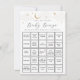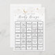 Encontre o cartão de atividade do chá de Bebê Convidado com nuvens de cinza, estrelas de ouro e lua. Personalize com suas perguntas, se desejar.