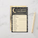 Este jogo "sobre a lua" é perfeito para qualquer um que tenha um chá de fraldas este ano. A design apresenta uma lua ouro com estrelas sobre um fundo de efeito de quadro de quadro de aviso e uma formulação de modelo fácil de personalizar. Basta dar esses lençóis aos seus convidados para jogar no chá, quem desembaralhar as palavras primeiro, ganha um prêmio da sua escolha! Respostas: 1) Fralda 2) Chá de fraldas 3) Esfregaço 4) Enfermeiro 5) Cobertura 6) Pacificador 7) Ponto único 8) Transbordo 9) Atividade Mat 10) Mistura 11) Bassinet 12) Frasco 13) Bovinos