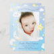 Cartões novos e doces de nascimento de bebês com uma foto, lua, estrelas e nuvens! Bonita e doce para anunciar um novo bebê ou uma menina!