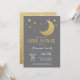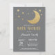 Sobre o convite ao Chá de fraldas da Lua. Dourado brilho e Cinza.
