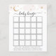 Placa de bingo chá de fraldas com nuvens cor-de-água rosa e estrelas douradas. Uma maneira divertida de interagir com os convidados do chá enquanto a mamãe a ser abre seus presentes.