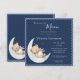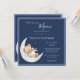 Estamos sobre o convite para chás de fraldas sobre o tema da lua. Um urso de pelúcia desenhado à mão adormecido a dormir numa lua. O fundo azul marinho dá o tom para um doce chá de fraldas temático neutro em gênero. Um convite tão doce e simples para esse evento especial. Coordenar o quadro azul escalado termina este adorável convite.