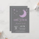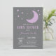 Sobre o convite ao Chá de fraldas da Lua. Roxo e Cinza.