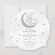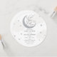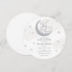 Chá de fraldas com nuvens de cinza d'água e estrelas com lua reluzente de prata e roteiro divertido "Estamos sobre a lua!" Personalize com suas informações ou clique em "clique para personalizar mais" para ajustar o tipo de fonte, o tamanho e a cor.