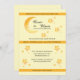 Um belo convite com uma ilustração da lua ouro e das estrelas sobre um fundo amarelo claro