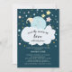 Adorável convite de chá de fraldas de lua apresentando uma lua fofa dormindo em uma nuvem com o ditado "sobre a lua apaixonada por Baby_______. Sacudir o nosso convite para ver um toque especial adicional.