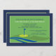 Um design contemporâneo com uma bandeira verde e azul. Perfeito para qualquer dia especial de golfista.
