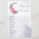 Estamos sobre a lua. Lua aquosa com flores. Respostas: CRAVINGS, CRYING, PACIFIER, FRASCO, LUZ NOTURNA, LULLABY, STROLLER, EPIDURAL, BURP, ALTA CADEIRA, SACO DE FRALDA, SWADDLE