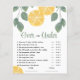 Sobre ou Sob o Jogo da Brida de Limão - aqui está o jogo de chá de panela comum para fazer seus convidados se divertirem. À medida que se prepara como um modelo, pode personalizá-lo de acordo com os seus desejos/necessidades. PARA MAIS JOGOS COM O MESMO DESIGN escreva G105 na caixa de pesquisa do meu compro. Obrigados para visitar o meu compro. Caso precise de algo sobre o design, entre em contato comigo: szdesigns2021@gmail.com