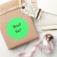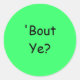Sobre Ye? (Irlandês Norte para: Como está Ye Doing?), adesivos redondos com letras negras em fundo verde.