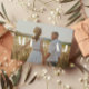Casamento branco e dourado, salve a data em que o anúncio apresenta uma foto frontal com uma simples sobreposição dos monogramas do casal. O verso apresenta uma moderna e mínima design de tipografia.