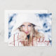 Este famoso cartão postal de Natal de Hollywood é perfeito para um modelo ou atriz que é a estrela do show. Feliz feriado escrito em um autógrafo de celebridades, rastreado manuscrito para um famoso visual fotográfico. Roteiro vermelho elegante sobre sua fotografia horizontal favorita.