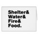 Sobrevivência Engraçada Paródia / Humor de Acampamento Sobrevivência ~ Abrigos e Água e Fogo e Comida. A Globe Trotters é especializada em imagens idiossincráticas de todo o mundo. Aqui você encontrará Cartões de Saudação, Cartões Postais, Posters, Mouséads e muito mais.