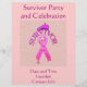 O berço rosa-pervertido se senta sobre a palavra "Sobrevivente" e uma fita rosa decorada com flores de cereja por uma forma única de dizer que você está lutando contra o cancer e você está ganhando.